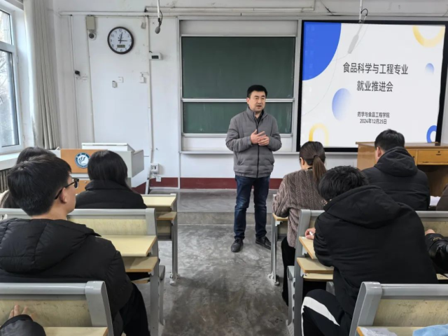 为扎实做好学生就业指导与服务工作,帮助学生了解就业形势,把握就业机会,12月25日,我院于OK138太阳集团东校区2#201举办食品科学与工程专业就业推进会,本次就业推进会由辅导员张珍军主持,学院党委副书记、副院长李永新,团委书记郑嘉会,食品科学与工程系主任郭兴峰,辅导员朱兆阔出席此次活动。