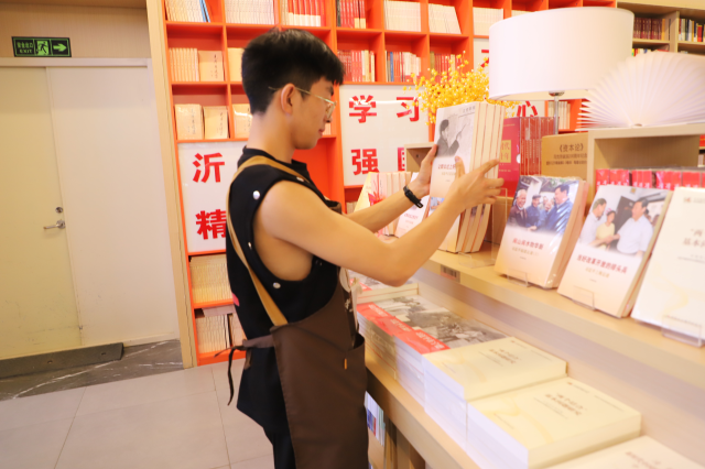 首先是书店分管负责人对我们进行基本的业务培训。熟悉完基本业务之后,又跟着书店员工进行书店各项细化工作——新华甄选物品的上架摆放、书架的合并归拢、看护孩子们完成作业、新书上货旧书退货、破旧椅子的维修等等一系列工作。