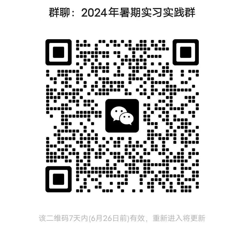 扫描下方二维码,加入2024年暑期实习实践群,在群内进行岗位选择、报名等事宜。