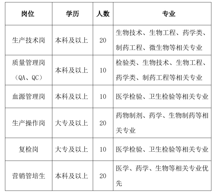 泰邦生物校园招聘需求